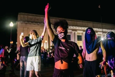 La violencia se desató cuando cientos de manifestantes marchaban por tercera noche, luego de que un afroestadunidense fue baleado el fin de semana pasado.