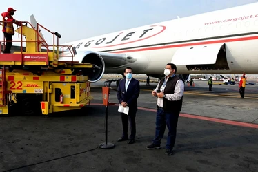 En un primer vuelo procedente de Los Ángeles, California, arribaron 563 mil 940 dosis. El segundo llegó de Bélgica con 374 mil 400.