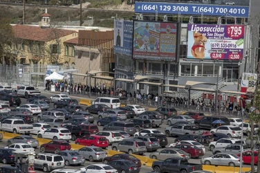 Un centenar de policías antimotines de EU realizaron un ejercicio de contención de ingreso a EU. Bloquearon la circulación vehicular por minutos.