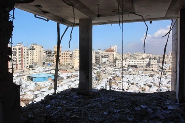 La “línea amarilla” restringe donde acampar en una ciudad destruida por la guerra; Tel Aviv presiona a islamitas por la entrega de los cautivos fallecidos.