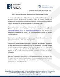 Embajada de Colombia exigirá que México respete a viajeros de su país