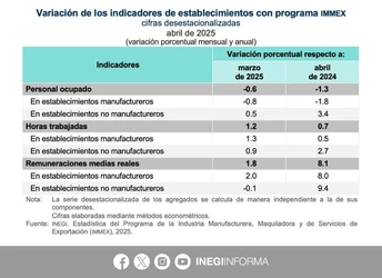La ocupación de personal por parte de la industria maquiladora reportó una caída mensual de 0.6% en abril, luego de que en marzo retrocedió 0.3%, dijo Inegi.