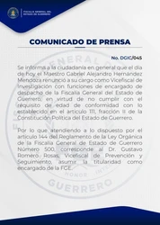 Renuncia encargado de despacho de la Fiscalía de Guerrero