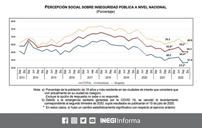 En diciembre de 2018 el 73.7% de la población consideraba que vivir en su ciudad era inseguro, mientras que los últimos resultados registran un 58.6%, refirió la SSPC.