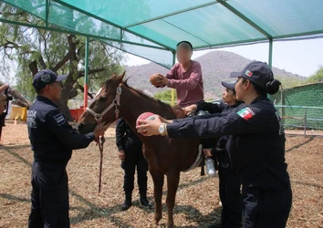 Joel Galván, oficial adscrito a Equinoterapia señaló que los dos caballos son muy tranquilos, tienen entre 20 y 23 años de edad.