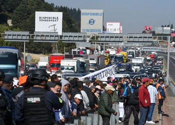 Los pobladores de San Jerónimo Acazuco exigen el pago de los terrenos ocupados para la construcción del Tren Interurbano; granaderos lograron liberar carriles en ambos sentidos.