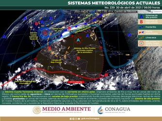 Se pronostican granizadas en Morelos, Guerrero, Michoacán y Morelos y rachas de viento de hasta 60 kilómetros por hora en Chihuahua, Coahuila y Durango.
