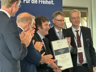 El mandatario argentino ha recibido el Premio de la Sociedad Hayek en la sede de la Fundación Friedrich August von Hayek, bautizada así en honor del pionero austriaco del neoliberalismo.