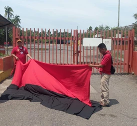 Mineros sindicalizados decidieron colocar las banderas rojinegras para exigir el pago justo de reparto de utilidades y reinstalación de trabajadores despedidos en la planta ubicada en Lázaro Cárdenas.