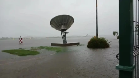 La plataforma del aeródromo quedó inundada, producto de las intensas lluvias registradas en la madrugada del viernes, por los efectos del huracán John.