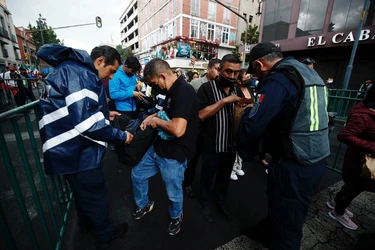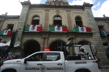 Decenas de elementos policiacos resguardan el sitio al tiempo que ya impiden el paso hacia la plancha del Zócalo capitalino por los preparativos para la celebración del inicio de Independencia.
