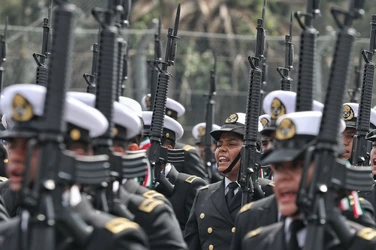 El gobernador Alejandro Murat, su familia e integrantes del gabinete estatal presenciaron el paso de las Fuerzas Armadas, policía estatal y de instituciones educativas.