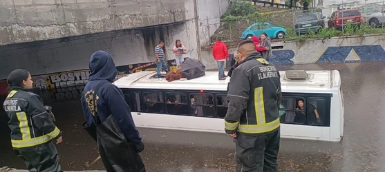 Decenas de personas permanecen varadas en banquetas, sobre asientos de para buses y varios han optado por subir a puentes peatonales para no ser alcanzados y arrastrados por el agua.