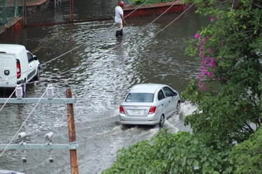 En la avenida Leyva un vehículo fue arrastrado, y este pudo ser liberado hasta que personal de esta dependencia municipal desazolvó el alcantarillado.