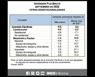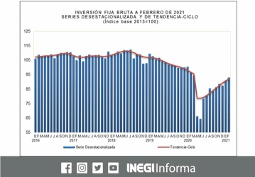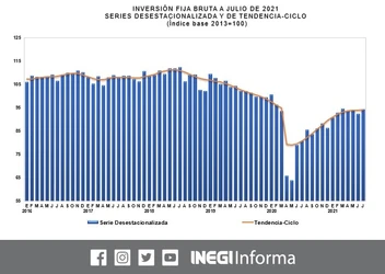 El indicador de formación bruta de capital fijo como contribución porcentual del PIB se situó en 18.2% ese año; en 2020 explicó 17.3% del PIB nacional.