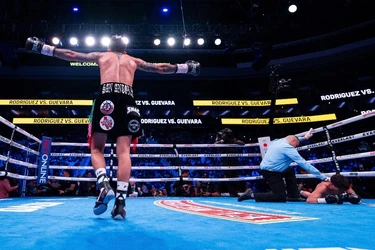 Rodríguez fue más hábil para leer a su rival y tras lanzar un potente derechazo mandó a la lona a Guevara, quien llegaba como campeón interino.