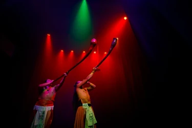 Combina mitos ancestrales y artes circenses para reinterpretar algunos pasajes de las leyendas mayas sobre la creación del Sol y la Luna.