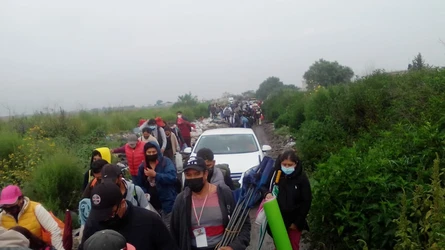 Durante la madrugada algunos llegaron en marcha, otros más en 150 vehículos, con tablas, láminas y máquinas para delimitar el paraje de El Salado.