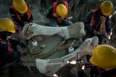 El mamut, uno de los más completos hallados hasta el momento, fue localizado cuando un vecino cavaba una cisterna; se trataba de 132 de sus huesos aún conservados.