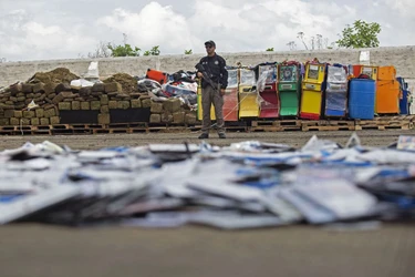 Elementos adscritos a la Vigésima Segunda Zona Naval, en coordinación con la Defensa, Agencia de Investigación Criminal y Guardia Nacional, realizaron cuatro cateos en la colonia Centro del municipio de Tuxtla Chico y aseguraron las máquinas.