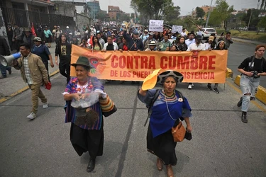 Manifestantes protestan contra la XXIX Cumbre Iberoamericana en Ecuador