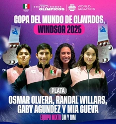 Los tricolores Osmar Olvera, Gabriela Agúndez, Mía Cueva y Randal Willars culminaron en el segundo lugar del podio en la final de equipo mixto de 3 y 10 metros.