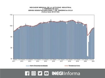 Al presentar el Indicador Mensual de la Actividad Industrial (Imai), el organismo indicó que, respecto al mes inmediato anterior (enero), dicho indicador tuvo un avance de 2.5 por ciento.