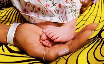 La modelo compartió en Instagram una foto suya sosteniendo los pies de su bebé.