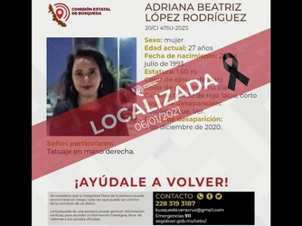 La familia de Adriana Beatriz, de 27 años, reportó su ausencia hace un mes, luego de que no regresó de una fiesta.