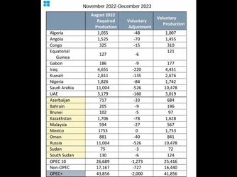 Decidió continuar en un millón 753 mil barriles diarios de noviembre de 2022 hasta diciembre de 2023. La organización anunció baja de 2 millones de bdp.