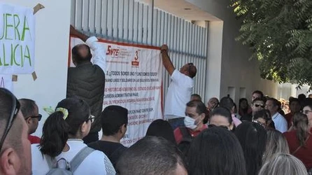 Exigen a la gobernadora Maru Campos el pago de prestaciones y salarios atrasados desde hace ocho meses y la mejora del servicio de salud que reciben del gobierno del estado.