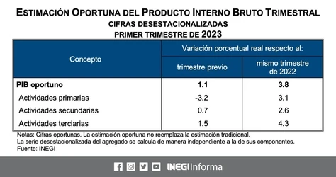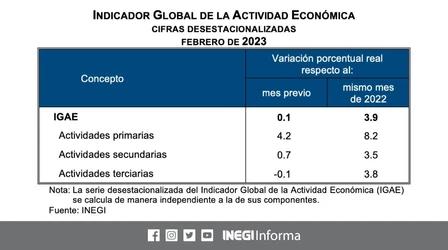 El sector agropecuario registró un avance mensual de 4.2%, el industrial creció 0.7 y los servicios retrocedieron 0.1%. El crecimiento anual fue de 3.9%.
