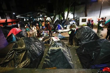 Demandan al INM y Gobernación que atiendan la problemática de más de 500 persnas que pernoctan en la plaza Giordano Bruno y otros espacios públicos aledaños.