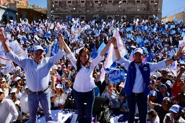 Ante más de 20 mil partidarios, la precandidata guinda a la gubernatura mexiquense cerró precampaña en las instalaciones de la Feria del Caballo en Texcoco.