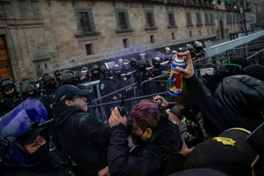 Las manifestantes realizaron pintas y agredieron a las mujeres policías, antes de retirarse hacia el Metro Pino Suárez.