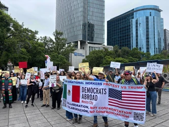 Queman piñata de Trump frente a Embajada de EU en CDMX