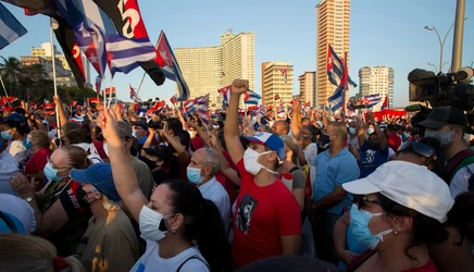 El ex presidente Raúl Castro, retirado de manera oficial en 2021, se mantuvo a la cabeza de la marcha, junto con el mandatario cubano, Miguel Díaz-Canel.