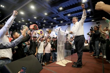 El aún coordinador del partido en el Senado arribó al hotel, en avenida Revolución, caminando con unos 40 seguidores que corearon “presidente, presidente”.