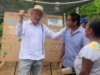 “La Selva Maya grita. SEMARNAT ¡Sálvala!” es el mensaje en la lona con la imagen de un jaguar que desplegaron a unos 70 metros de altura nueve activistas que escalaron el monumento.