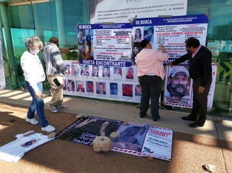 Las mujeres pegaron fotos de sus desaparecidos en el edificio de la FGJEZ