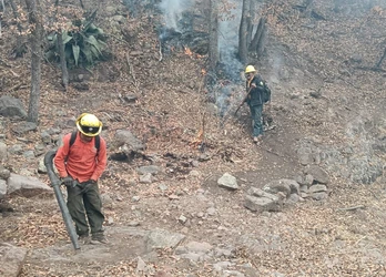 Aguanieve sorprende a brigadistas que combaten incendio en Nácori Chico; logran 50% de control