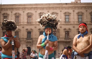Comunidades de la Sierra Tarahumara, asentados en la capital de Chihuahua a causa de la violencia, realizaron una ceremonia que mezcla las creencias católicas y prehispánicas.