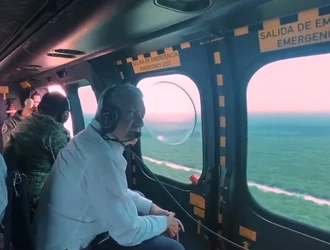 AMLO sobrevuela tramo del Tren Maya en Tabasco