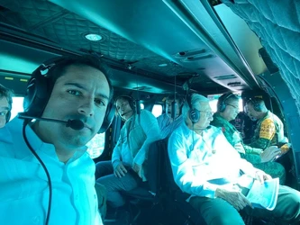 AMLO y empresarios sobrevuelan obras del Tren Maya