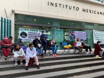 Jubilados y pensionados bloquean accesos a sede del IMSS