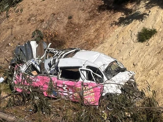 La unidad de transporte público cayó a un barranco después de impacto con otra dos automóviles.