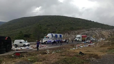 De acuerdo con los reportes policiales, el conductor del vehículo de carga pesada perdió el control de la unidad debido al asfalto mojado por lo que terminó volcando, en su caída alcanzó a golpear a tres automóviles.