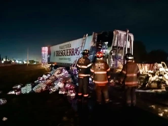 Se incendia tráiler en el kilómetro 29 del Circuito Exterior Mexiquense