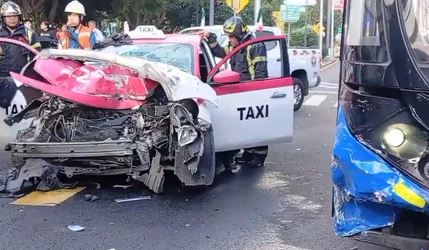 El accidente habría ocurrido cuando el taxi intentó cruzar la avenida aún con el semáforo en luz roja sin percatarse de la cercanía de la unidad de transporte.