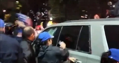 Los uniformados golpearon puertas y ventanas de una camioneta luego de que las cuatro personas que estaban a bordo de la unidad se negaran a bajarse para una revisión en calles de la colonia Tránsito.
